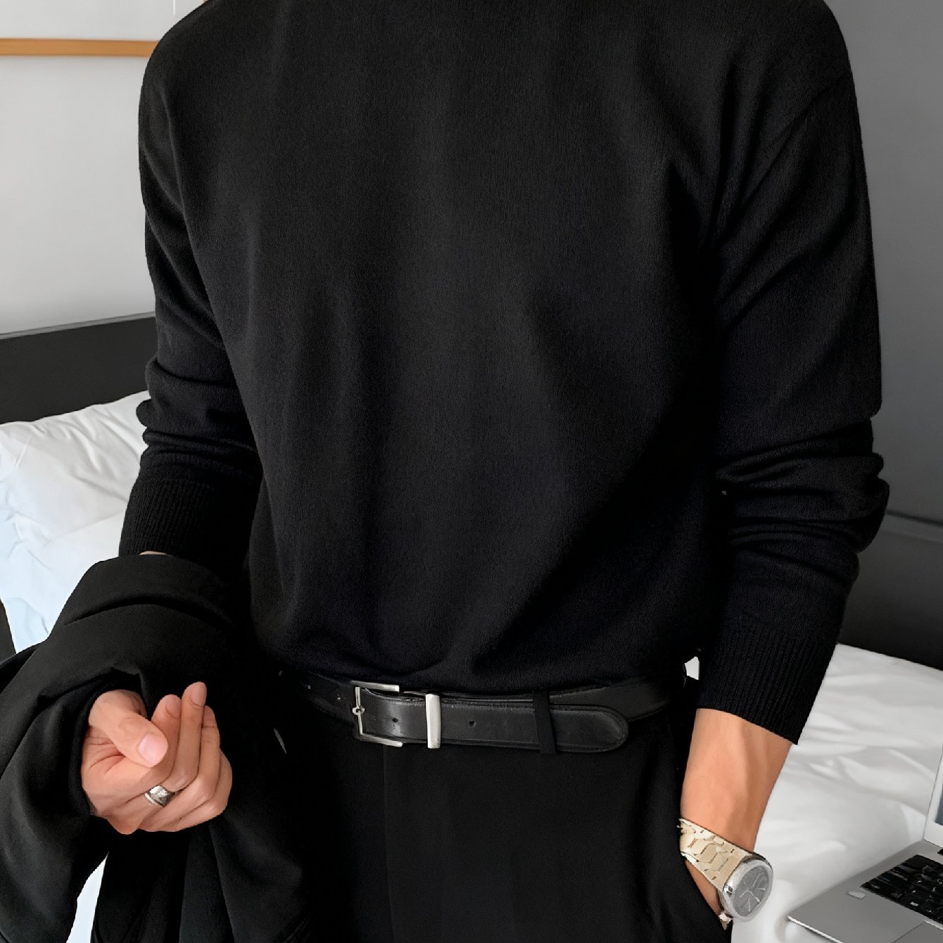 TEMU 남성용 부드럽고 편안한 솔리드 컬러 하프 하이넥 스웨터 재킷 - 루즈핏 칼라 긴팔 , 기계 세탁 가능한 비즈니스 캐주얼, 사무실 및 야외 착용용 겨울 의류