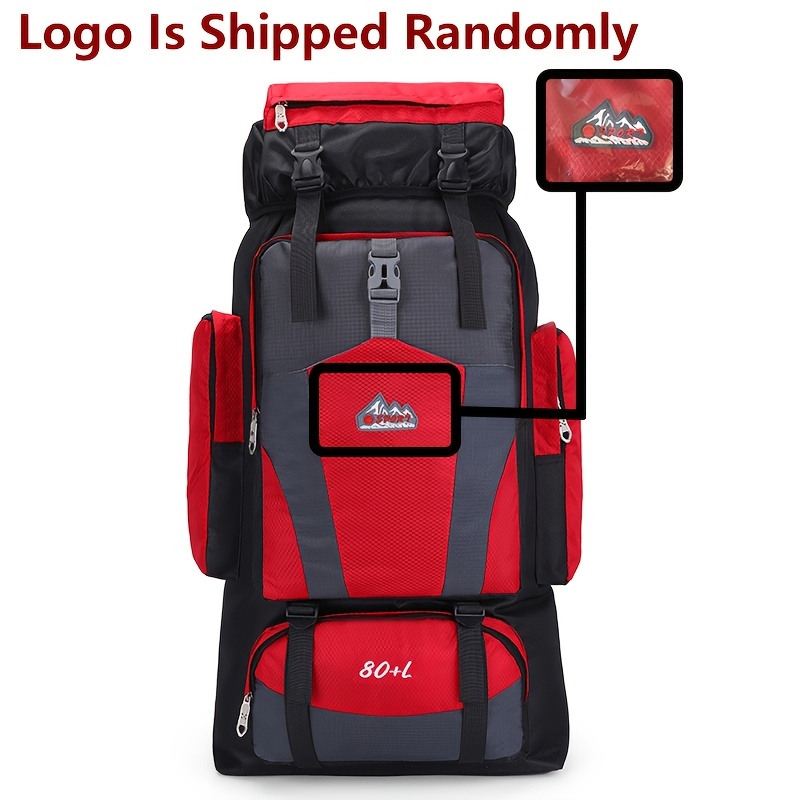 TEMU 80L 대용량 하이킹 백팩, 다중 포켓이 있는 가벼운 나일론 여행 가방, 남성 및 여성용 캐주얼 스타일, 야외 트레킹 캠핑 노트북 가방, 조절 가능한 어깨 스트랩, 스냅 클로저, 폴리에스테르 안감, 습식 와이프 클린, 위치 프린팅