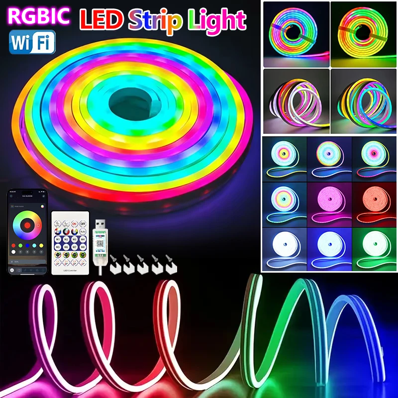 1-5M 드림컬러 RGBIC LED 네온 로프 라이트 블루투스 노벨티 USB 5V WS2812 방수 테이프 페어리 램프 (게임룸 무드등)