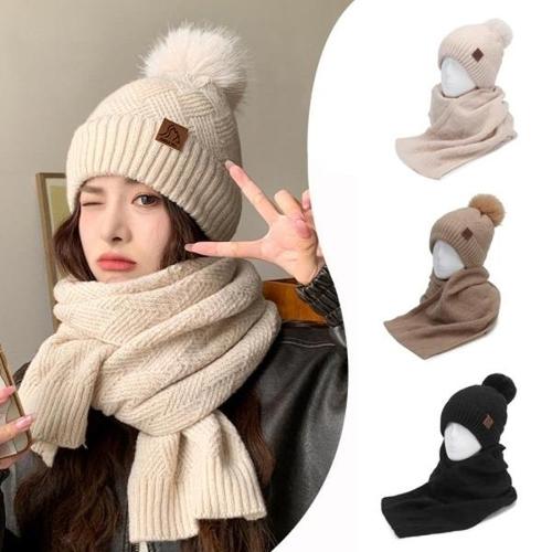 [JHQRJFN0_4B]여성 부드런 방울비니 니트 기모 목도리 세트