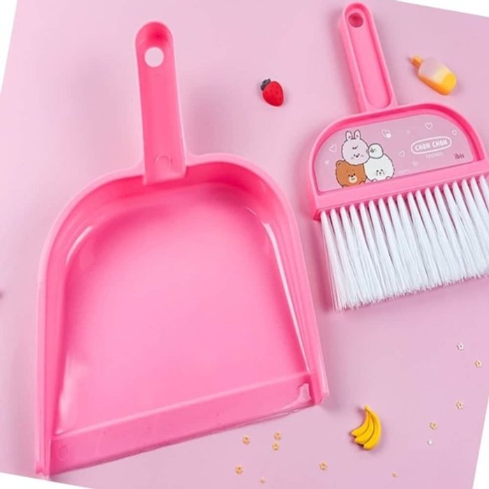 스마일 미니 빗자루 쓰레받기 세트 그린 책상 방