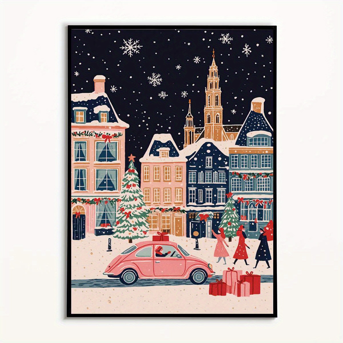 TEMU 1개 겨울 크리스마스 타운 벽 예술 포스터 - 레트로 향수, 침실, 사무실용 - 액자 없는 캔버스, 휴일 파티 장식 (추수감사절, 할로윈, 크리스마스) - 아늑한 겨울 풍경, 2D 평면, 방 장식에 완벽