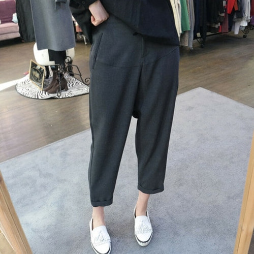 여성 와이드 배기핏 슬랙스 8부바지 밴딩팬츠