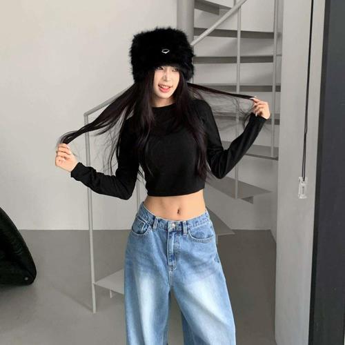 옷자락 / 여자 속기모 겨울 따뜻한 크롭 배꼽 긴팔 티셔츠