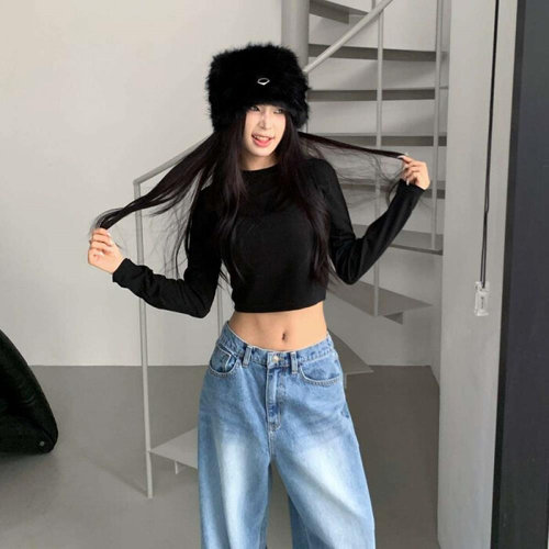 [다잇템]여자 롱슬리브 FW 속기모 배꼽 포근한 티셔츠