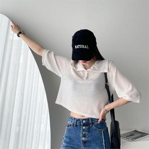 [다잇템]여자 카라넥 짧은 배꼽 봄여름 티셔츠 (8376720A)