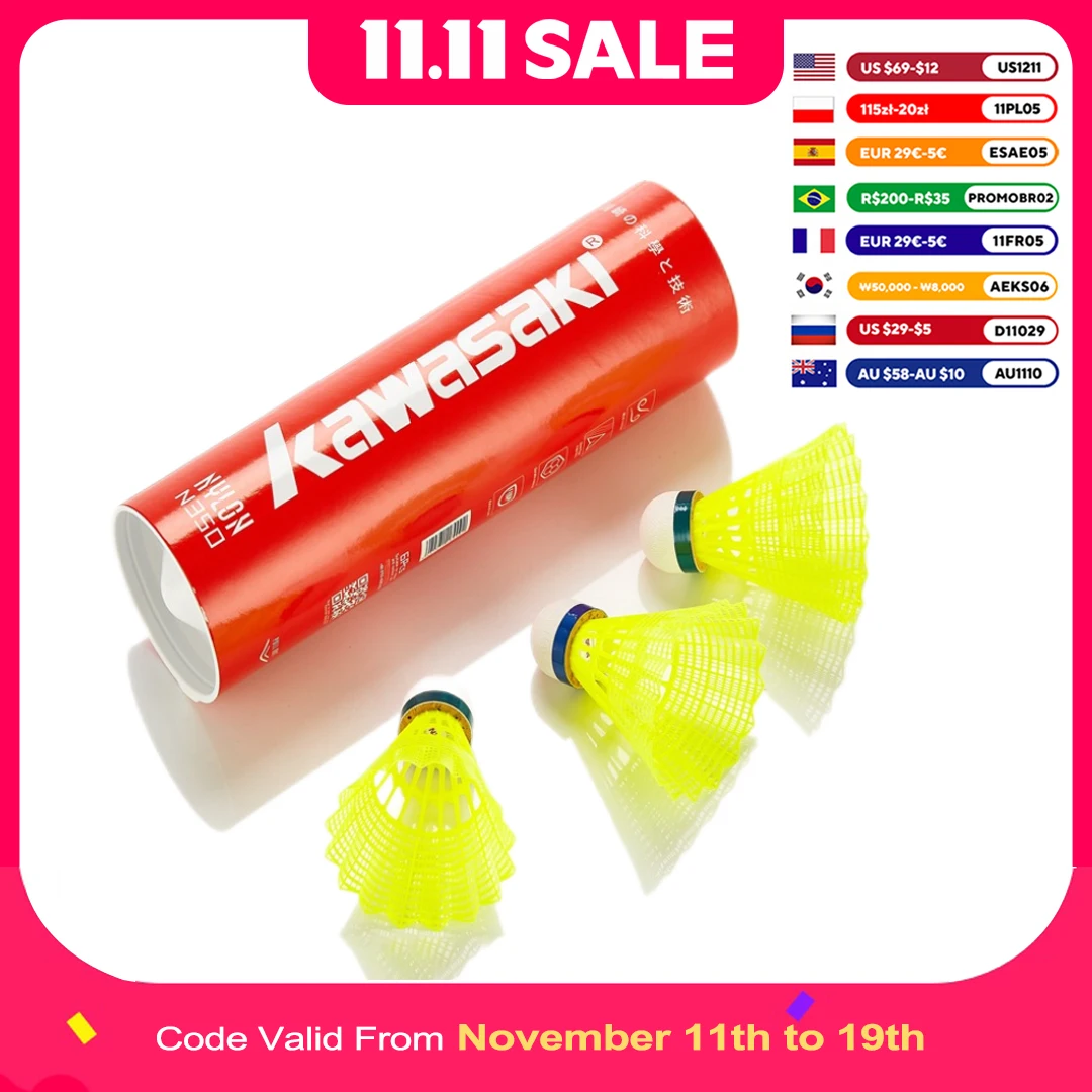 훈련용 가와사키 나일론 볼 N350 야외 훈련용 6 Pcs 배드민턴 플라스틱 셔틀콕 버디 내구성 중간 속도 사용