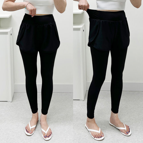 [베이직엘르]베이직엘르 여성인 워터레깅스 반바지 레이어드 비치팬츠 블랙 BEL-S254K