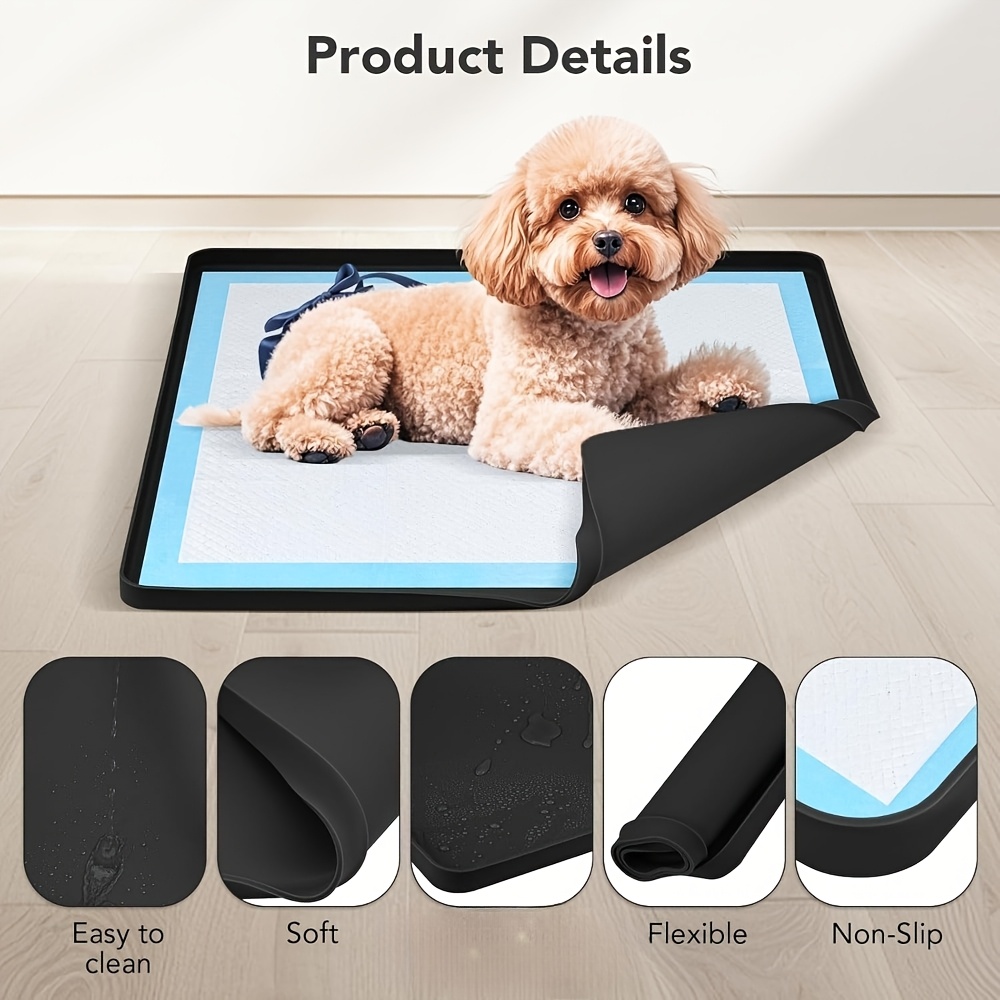 TEMU 강아지 소변패드 홀더, 24"x24" 미끄럼방지 및 누수방지 실리콘 매트, 높은 가장자리 디자인, 사각형 강아지 배변 훈련 패드 트레이, 홈 바닥 보호용 (블랙)