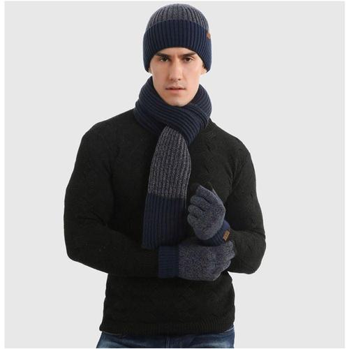남성 배색 니트 머플러 장갑 비니 세트 1P 겨울 보온 WFGA77W