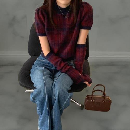 [옷자락] 여성 클래식 배색 핸드뭐머 반팔 니트 세트