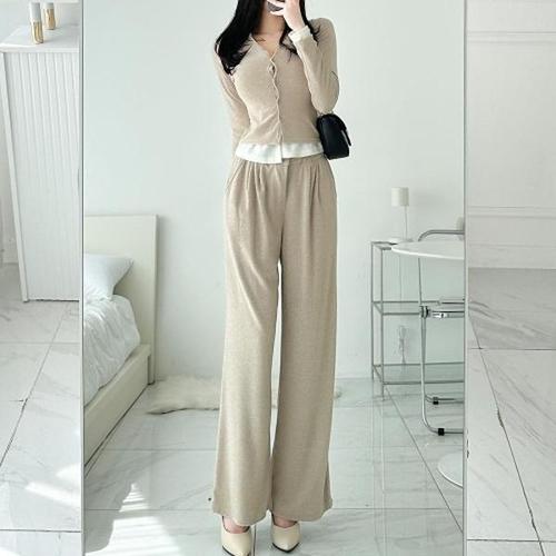 니트 와이드 니트 팬츠 투피스 세트 배색 니트세트