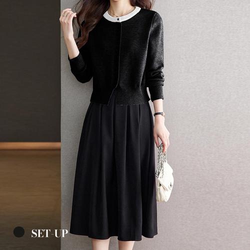 [리빌모아]여자 배색 카라 니트 플리츠 스커트 세트 SDW-SET-SMFNC040135