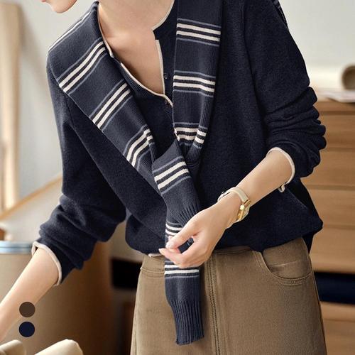 KARRA 배색라인오픈넥니트+숄SET_A6S0035