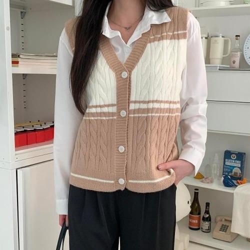 [브이와이][VY] 여자 가을 배색 니트 셔츠 세트_CD8339_18394308_588847