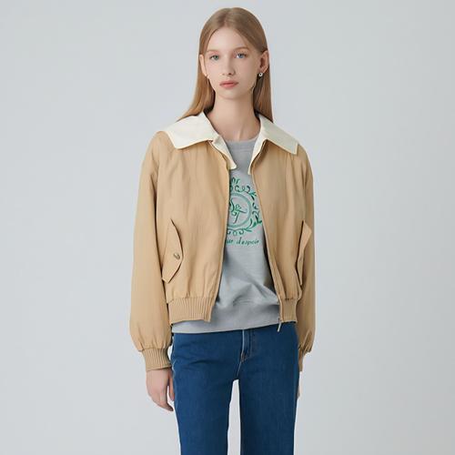 [바쏘옴므]자켓 울혼방 양가죽(배색) 블루종 점퍼 베이지 Z4UA16-2