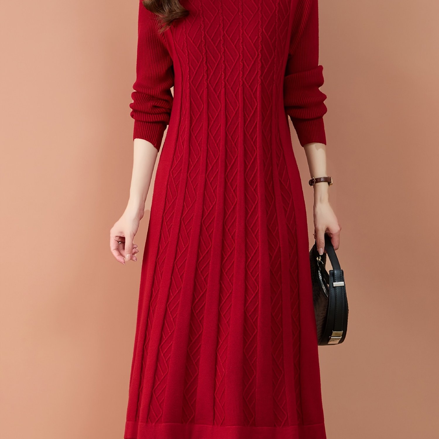 TEMU 플러스 사이즈 - 플러스 사이즈 - 신상 가을 겨울 롱 스웨터 원피스, 무릎 길이 단색 여성 원피스, 스타일리시한 루즈핏 긴팔 캐블 디자인 드레스