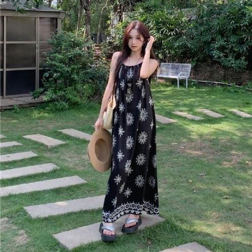 F007244_바캉스룩 백리스 빈티지 롱원피스