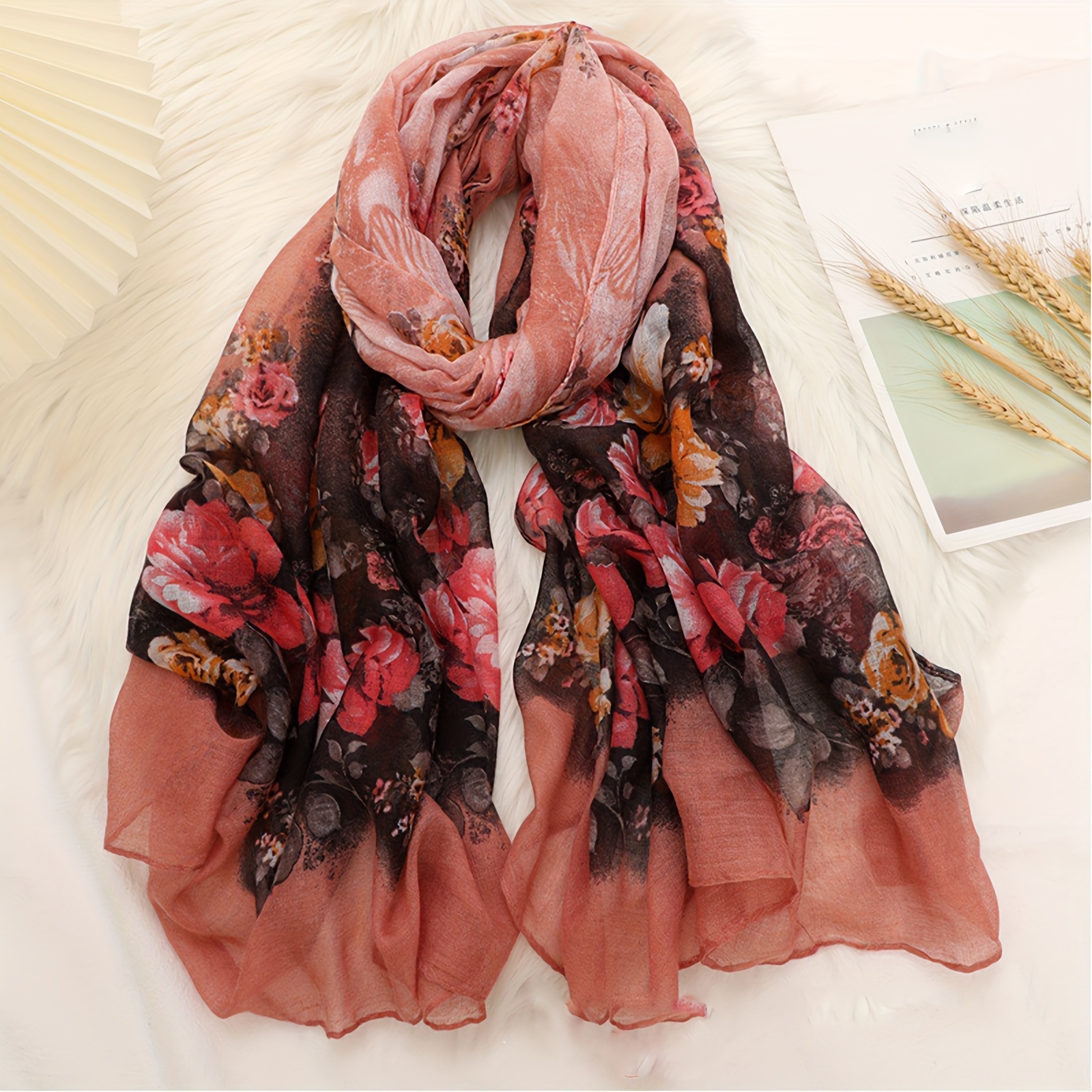 TEMU 여성용 새로운 스타일 페일리 패턴 스카프 1개 - 우아하고 다재다능한 롱 스카프, 부드러운 섬유로 제작되었으며 다양한 플로럴 프린트가 있으며 캐주얼한 외출, 데이트 및 바람막이에 적합합니다.