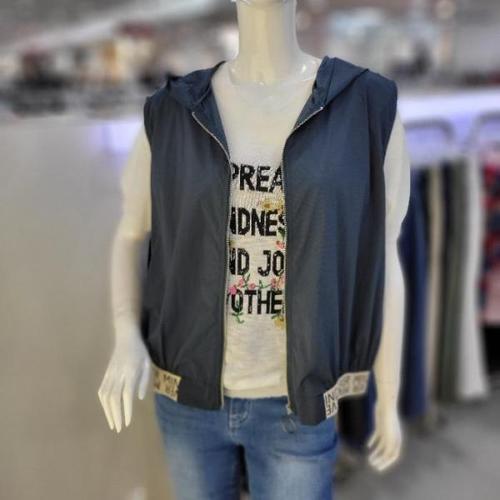 [모슬린]엄마옷 후드 밴드장식 지퍼 조끼 613FGH475 마담/중년여성/빅사이즈/50대/60대