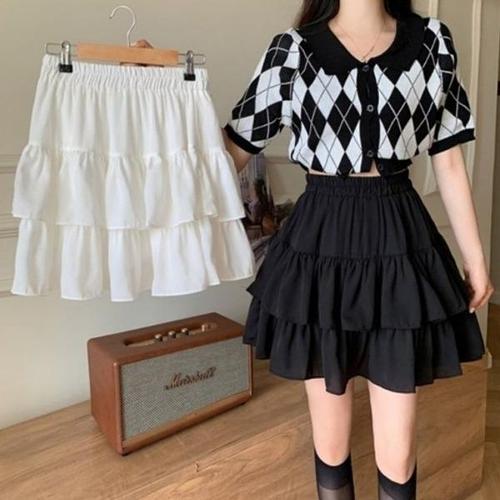 [엄지척]여학생 허리 밴딩 미니 페이크 스커트 레이어드 치마_19958047_667501