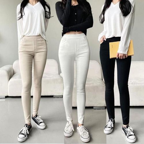 [에이치플러스몰]여름 얇은허리 면 스키니진 스판바지 밴딩 가을바지