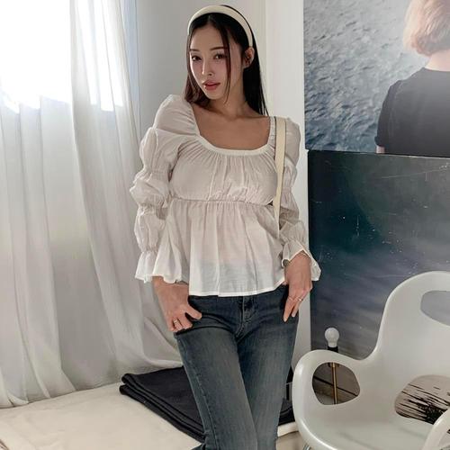 MIREA 여성 스모크밴딩 블라우스 퍼프소매 스퀘어넥 봄여름 데일리 CTX20