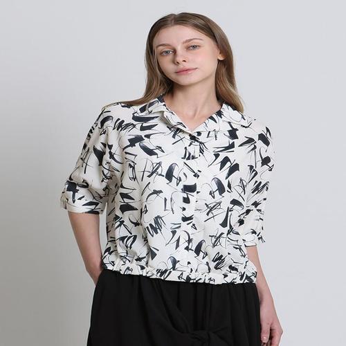 [보니스팍스][보니스팍스(Bonispax)] 패턴 프린트 뒤트임 밴딩 카라 블라우스 (택가격 109000원)