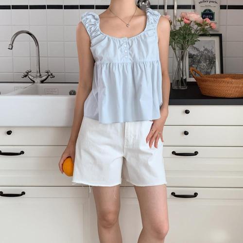 [옷자락]여자 프릴 밴딩 숄더 스트랩 끈나시 블라우스
