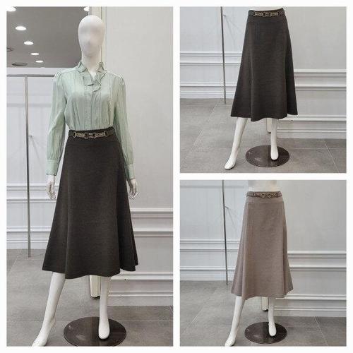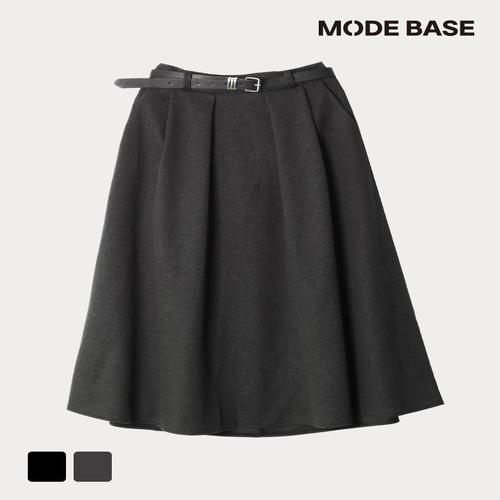 [모드베이스]모드베이스 햅번 밴딩 스커트 벨트 세트 플레어 롱스커트