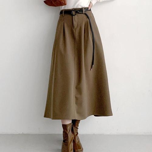 [옷자락]여자 겨울 연말룩 링벨트 핀턱 A라인 기모 롱스커트