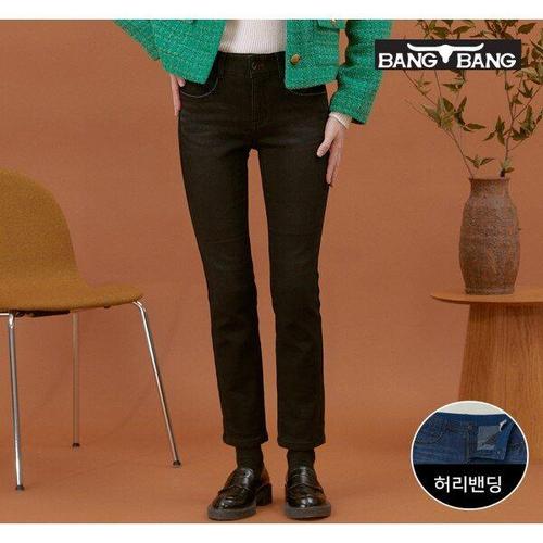 [뱅뱅][뱅뱅] 여성 슬림핏 라이크라 이중직 기모 데님 검정
