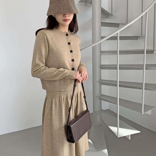 [다잇템]여성 슬리브리스 스모킹 롱 버튼 카디건 세트