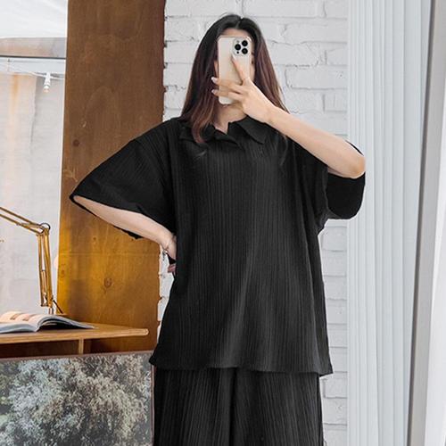 남여공용 여름 카라 플리츠 반팔 티셔츠 5C-KAH-Q055-버건디