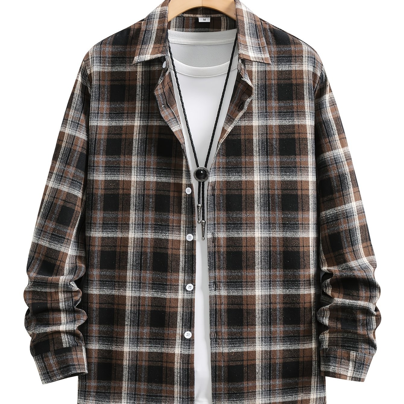 TEMU 세련된 가을/겨울 체크 브러시 디자인 니치 셔츠 재킷