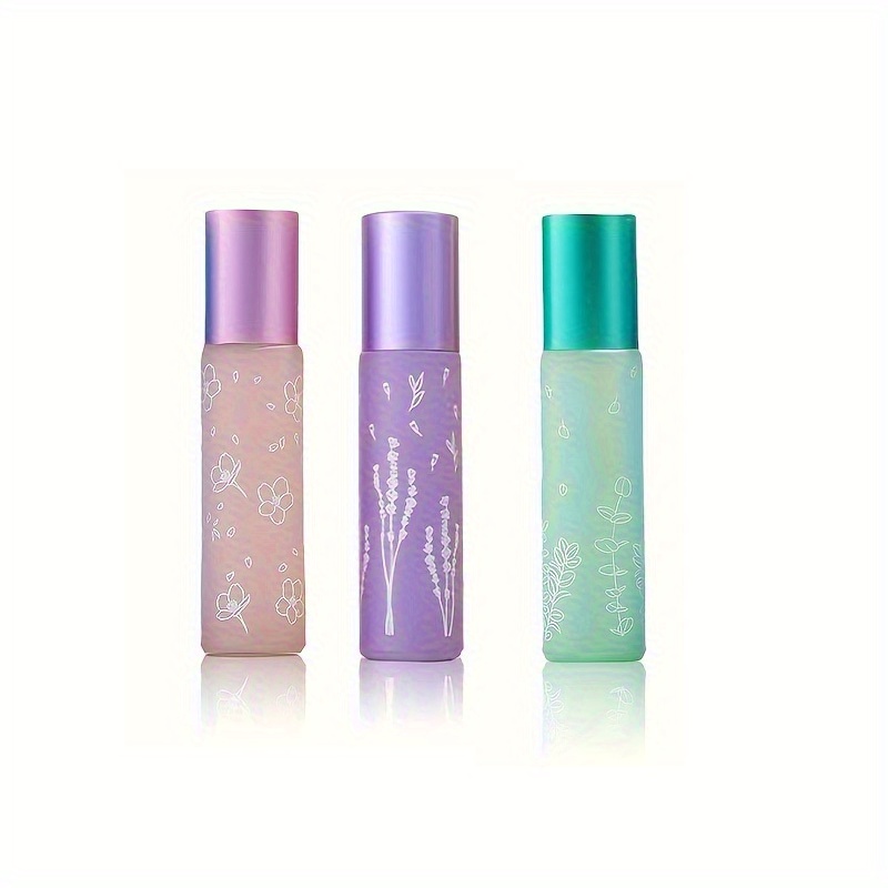 TEMU 3개 세트 롤온 에센셜 오일 & 향수 샘플 디스펜서 병 - 황산염 무함유, 손세탁 전용, 꽃무늬 & 기하학적 디자인의 라운드 여행용 컨테이너, 할로윈 외출 및 할로윈 액세서리, 슬림한 병 디자인, 내구성 있는 유리병, 에센셜 오일 액세서리, 향수 롤온 병, 롤온 병, 롤온 병, 여행 액세서리, 여행용 병