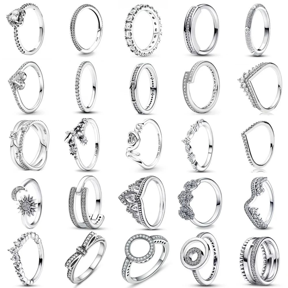 화이트 시리즈 오리지널 925 스털링 실버 여성 손가락 반지 여성을위한 실버 데이지 로즈 엄마 하트 지르코니아 스톤 럭셔리 쥬얼리