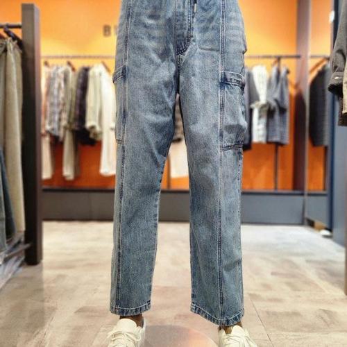 [버커루]남성 테이퍼드핏 데님 카고 밴딩팬츠-DG