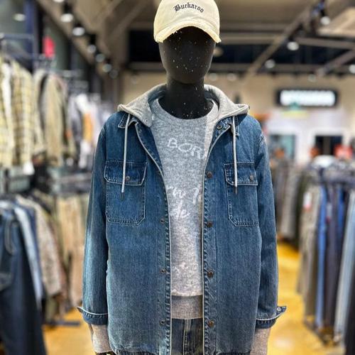 [버커루]남성 후드 탈부착 데님셔켓 - DG