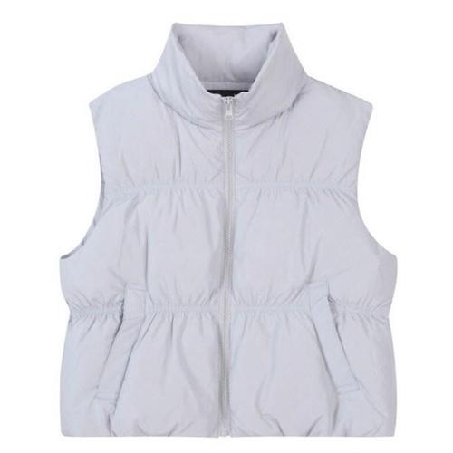 TEMU 여성용 경량 퀼팅 스탠드 칼라 지퍼 조끼 - 겨울 따뜻함, 신축성 없는 원단, 스탠드 칼라 클로저, 단색 캐주얼 레이어링, 캐주얼 복장, 겨울 의류, 내구성 좋은 아우터, 다용도 아우터, 오피스룩