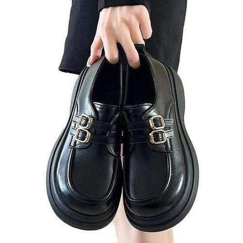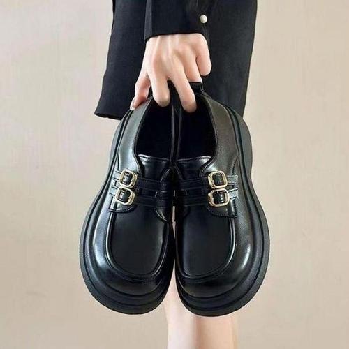 [셀러허브_여성트랜드패션]여성 통굽 플랫폼 블랙 로퍼 구두 더블버클