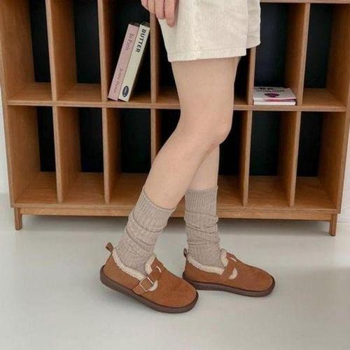 [셀러허브_여성트랜드패션]여자 둥근코 퍼 포인트 버클 스웨이드 로퍼