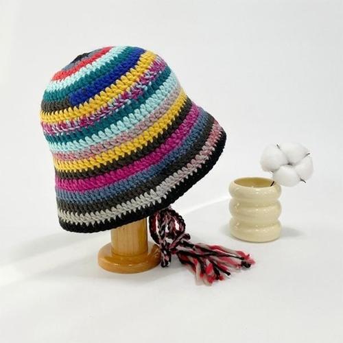 [에이치플러스몰]가을 겨울 여성 버킷햇 니트 단색 스트랩 끈 비니 모자
