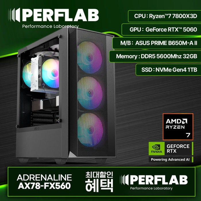PERFLAB 라이젠7 7800X3D RTX 5060 8GB 32GB 1TB 게이밍 컴퓨터 데스크탑 조립 PC