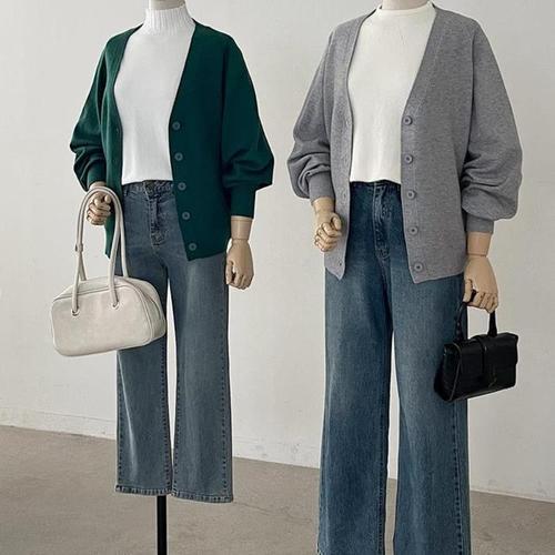 [다잇템]여자 미니멀리즘 벌룬 환절기 버튼 가디건 (11037659A)