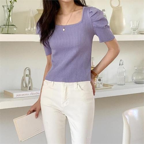 [다잇템]여자 스웨터 스퀘어넥 SS 귀여운 벌룬소매 반팔 (10035688A)