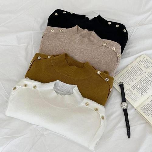 [다잇템]여자 스웨터 단추 페미닌 벌룬 잔주름 블라우스 (9815041A)