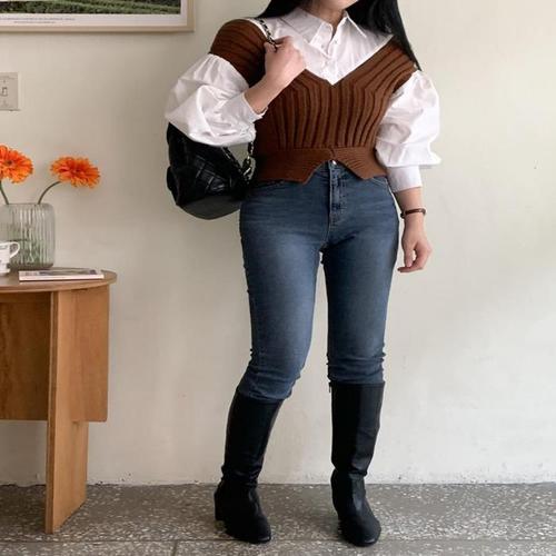 [다잇템]여자 슬림핏 코디 스웨터 벌룬 골지 셔츠 (10964668A)