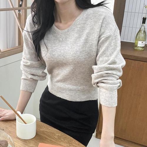 소프트 울 알파카 브이넥 벌룬 오버핏 롱 니트 티셔츠 5color