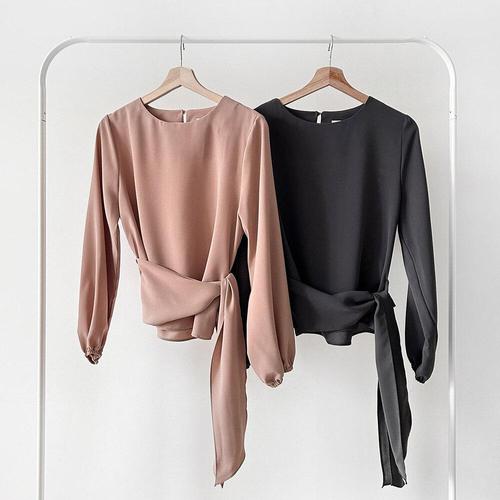 [다잇템]여자 코디 허리 리본랩 벌룬 들러리룩 블라우스